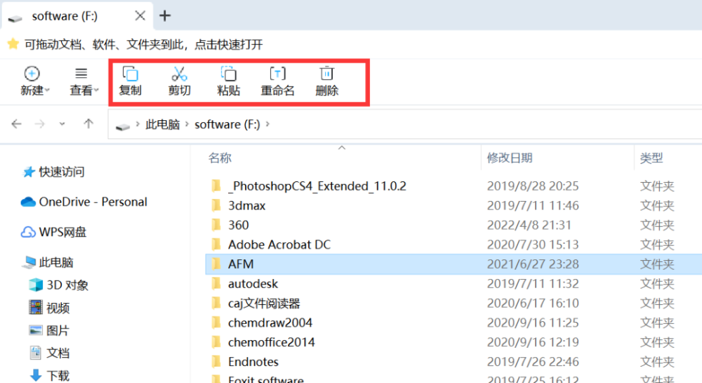 该界面具有一些快速的特性,只要选择文件夹或文件而不需要单击右键或快捷键,就可以复制、剪切、粘贴、重命名和删除这些文件夹或文件。