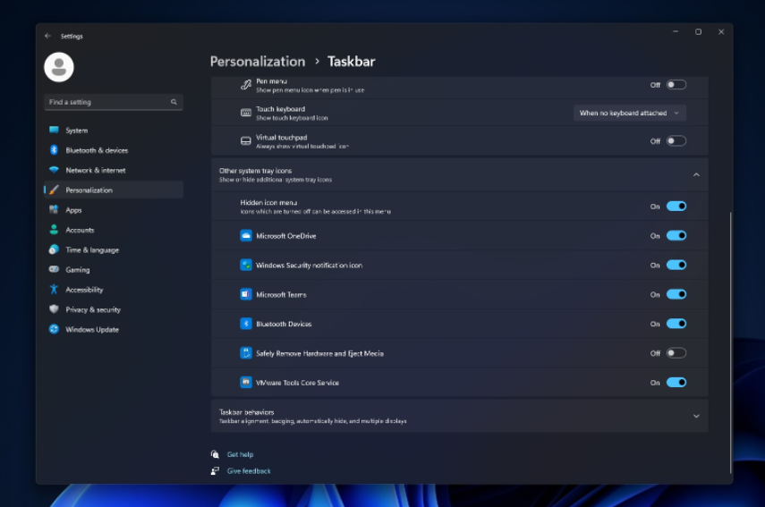 还值得注意的是,Windows 11 在任务栏设置中仍然缺少快捷键, 这样您就可以在所有系统托盘图标上显示开关 。我们不知道这个功能什么时候会回来微软执行官在回应调整时说, “谢谢你就这一问题与我们联系。这不是我们目前支持的。不过,这项建议已经送交技术小组,供今后审议。