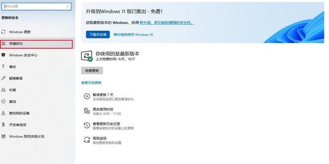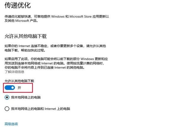 当您到达子页面时,选择“传输优化”,然后选择“允许从其他计算机下载”以撤销项目,如果它不关闭,将消耗网络带宽和磁盘空间,卡通将长期无法使用。