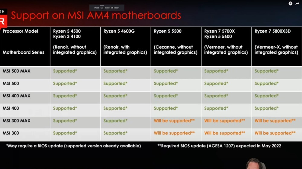 在BIOS升级后,AMD建议将X570/B550与A520和AMD400系统合并,目前由5800X3D提供支助。