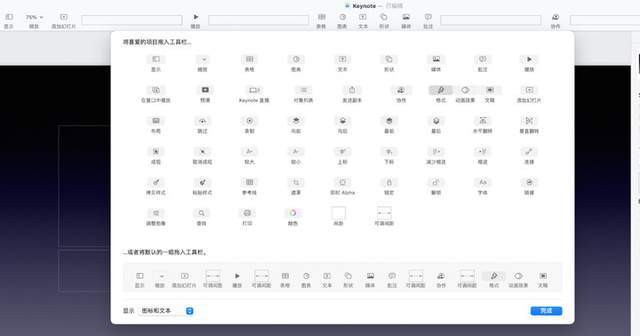 如果您认为工具栏顶部功能太低, 您可以单击鼠标右键将其拖入工具栏的典型功能中, 从而打开自定义工具栏功能, 让幻灯片演示文稿更容易 。