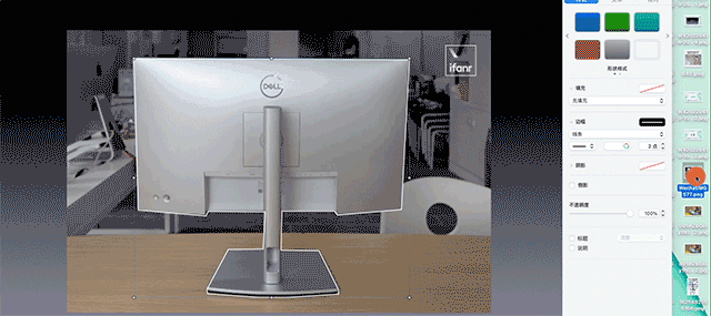 当您使用 PowerPoint 时, 您习惯了“ 向上看”, 因为大多数功能门户都在顶端; 但是, 使用 Keyoot 需要改变习惯和向右运动, 因为对象编辑功能在右边 。