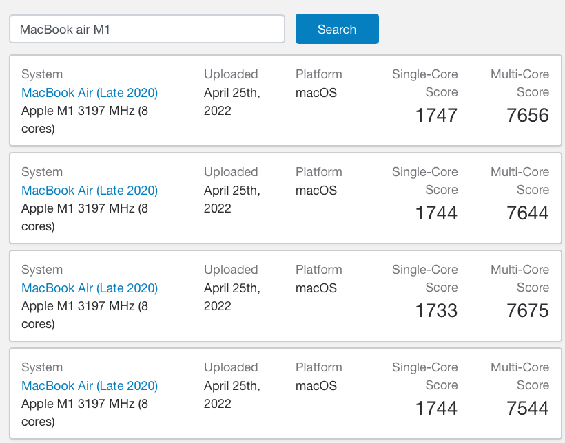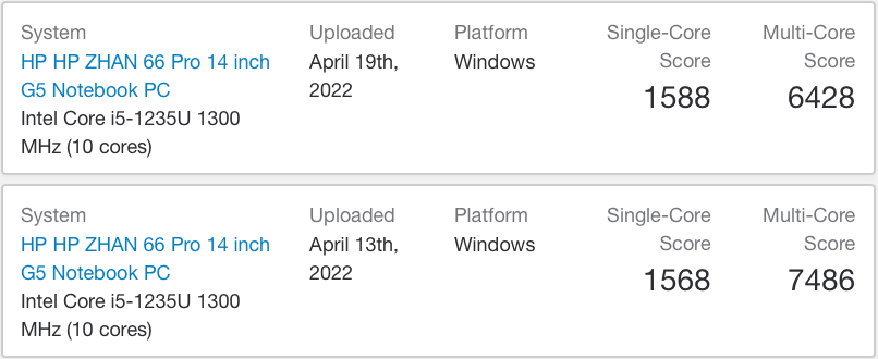 新的地表 Pro X 显示 8cx Gen3 CPU 。使用 16GB 内存,1005分的核弹得分5574分钟,多内核。此分数略低于上次的 TinkPad X13 运行( 110) 。5736),英特尔最新的i5 -1235U CPU甚至比苹果的M1芯片还小