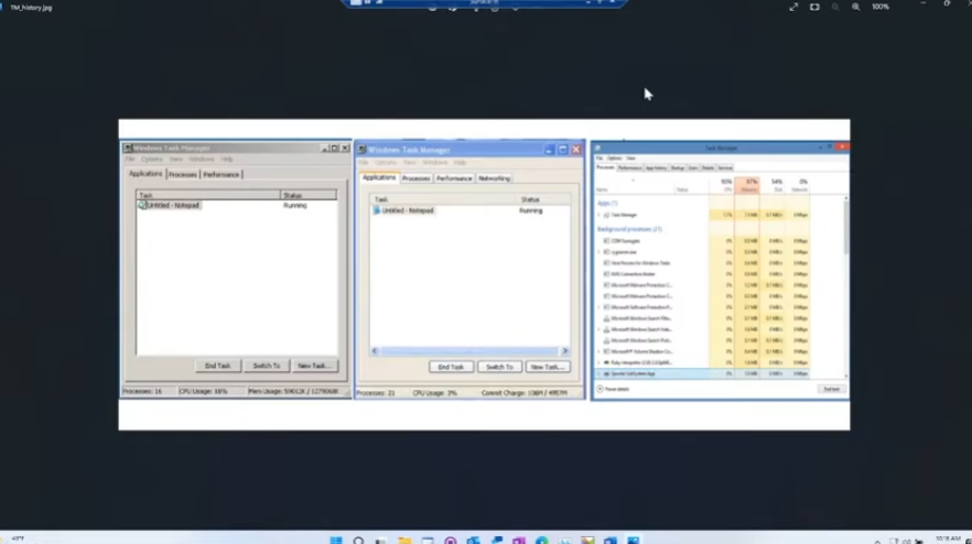 微软执行官最初展示了上一代任务经理的界面,展示了UI是如何变得更现代和多彩化的。