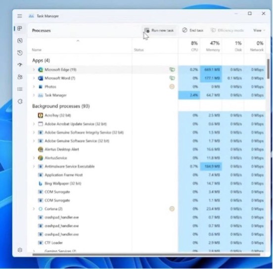 任务管理器的显示界面与当前版本的主 Windows 11 主题更为相似,而一些旧的 UI 窗口可能仍然可见,但总体颜色相同。