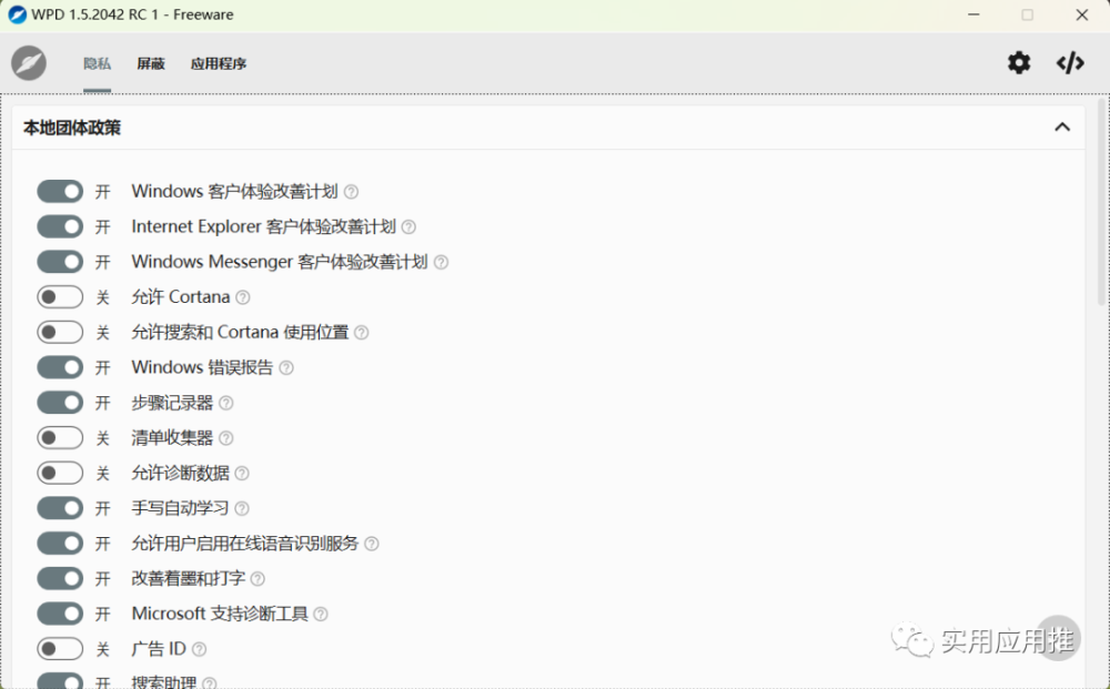 如果您不想微软访问此数据, 您可能会禁用系统设置、 服务、 组合策略和注册表格中的选择, 但这些活动显然太费时, 许多小伙伴无法定位设置门户。 在此建议使用 Windows 隐私优化工具 WPD 。