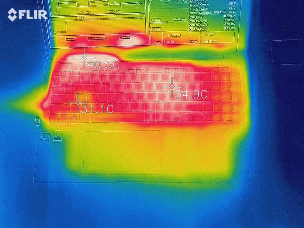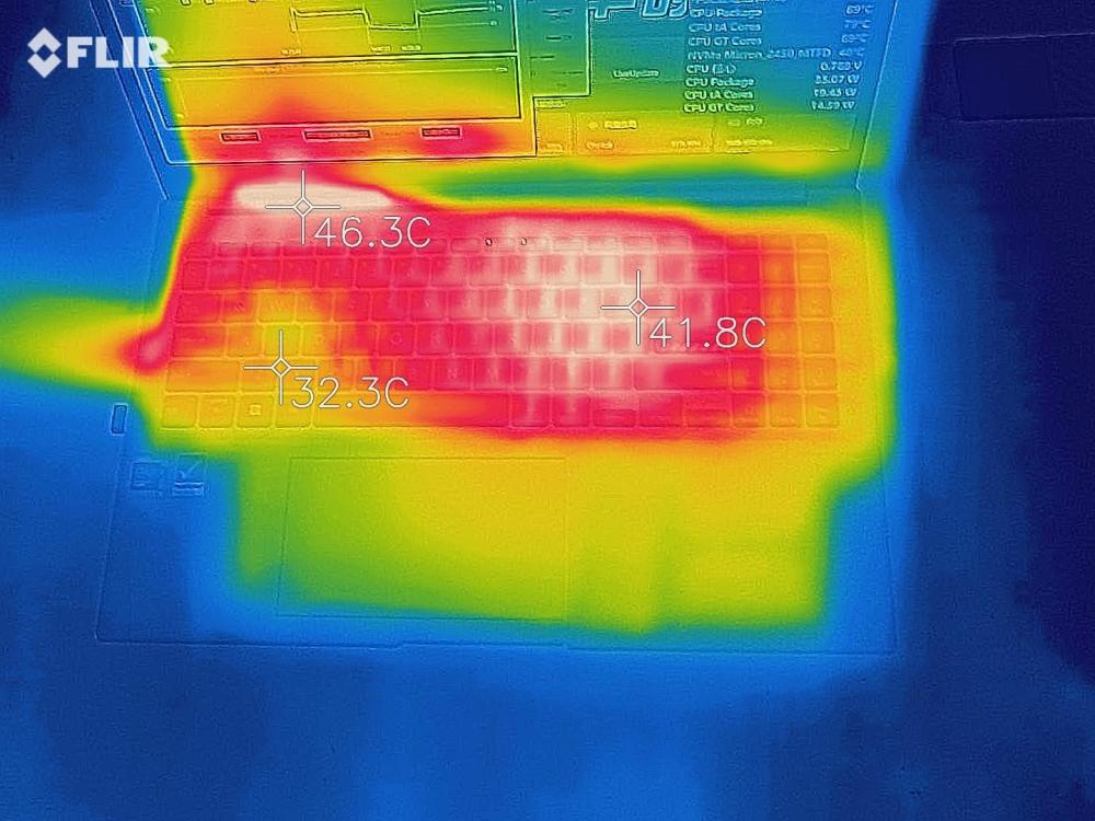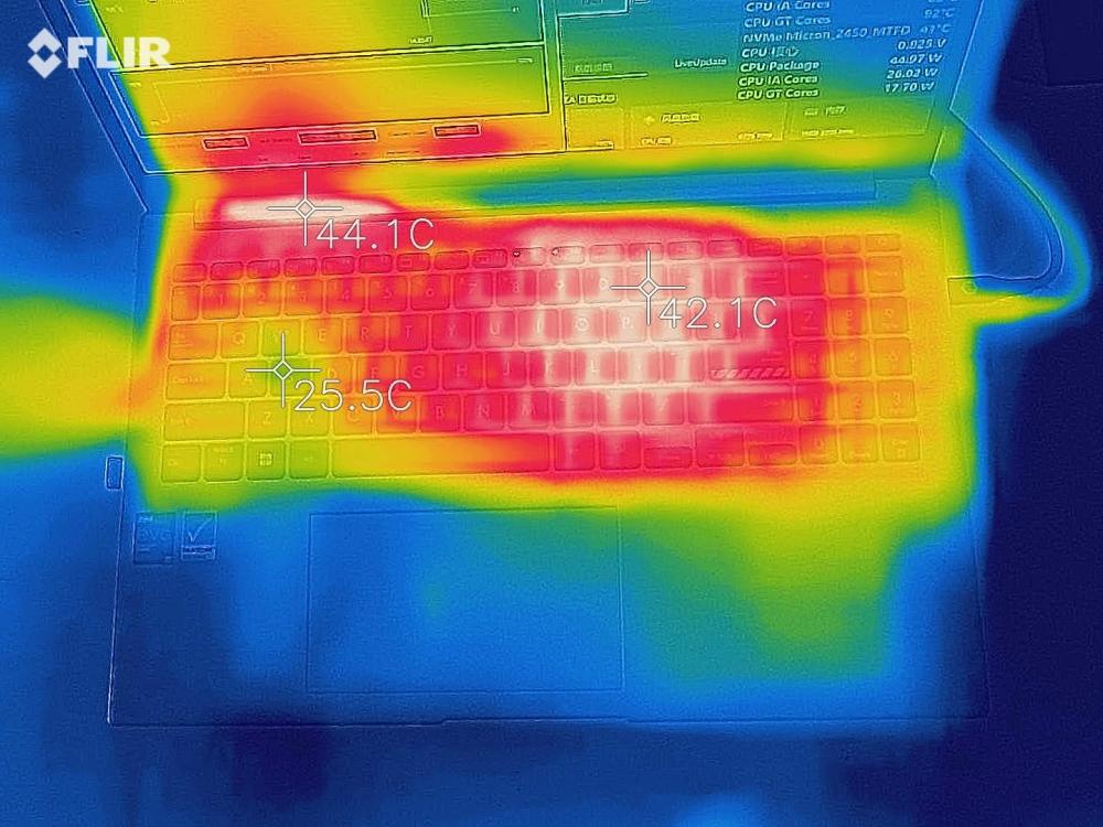 1°时,高温区域主要出现在转子上,转子直接在通风口中爆炸,在42°时在第二个键盘的右中方,这里的温度可以通过触摸感觉到,而游戏中广泛使用的QWER区域温度则低于房间温度。