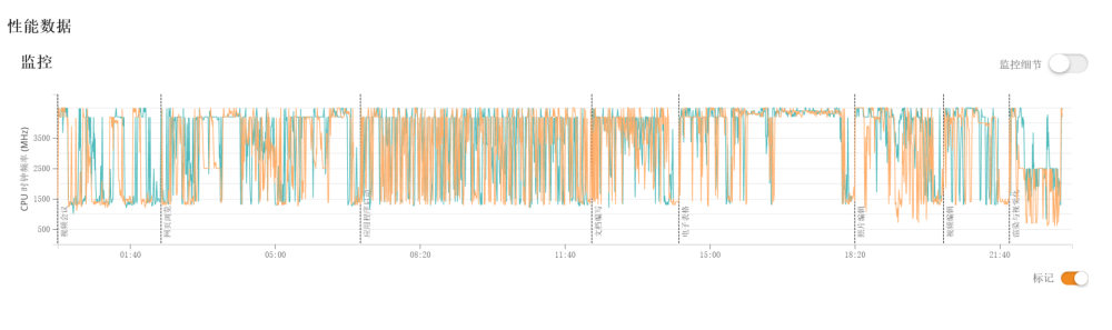 PCmark用于检查两种模型下的CPU运动,而插件和电池模式下的CPU运动呈阳性,单核速度达到4.5千兆赫,即使低载,CPU也可以运行4千兆赫。 2千兆赫左右。