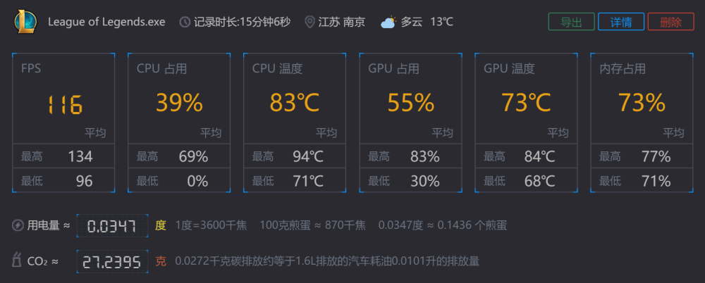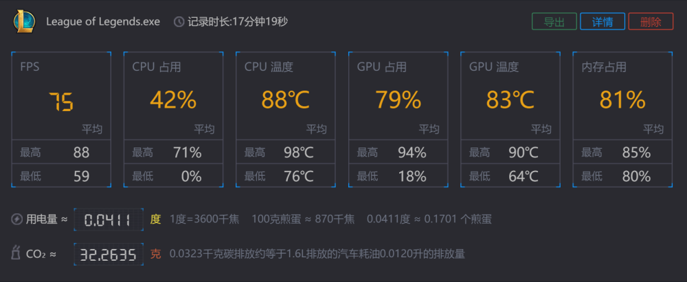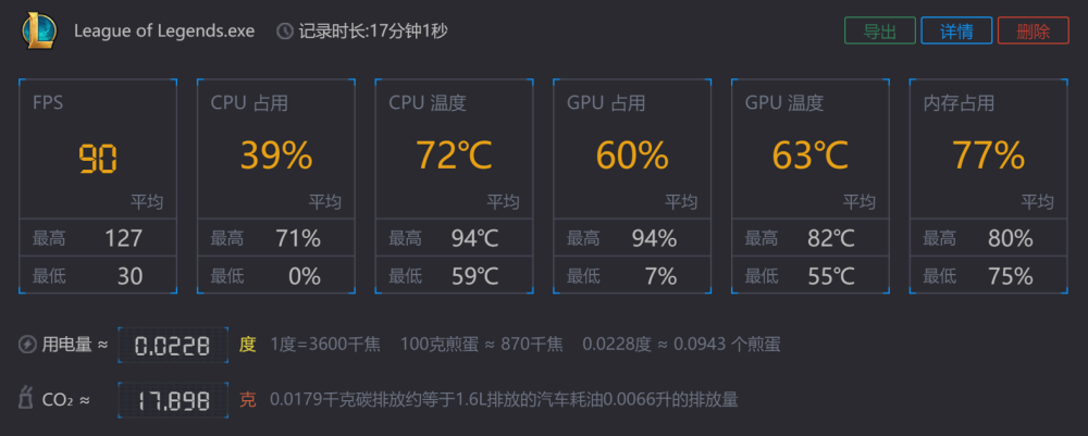 于是我再次测试了电池模式, 我可以看到 LOL 游戏在电池模式下并不那么难。