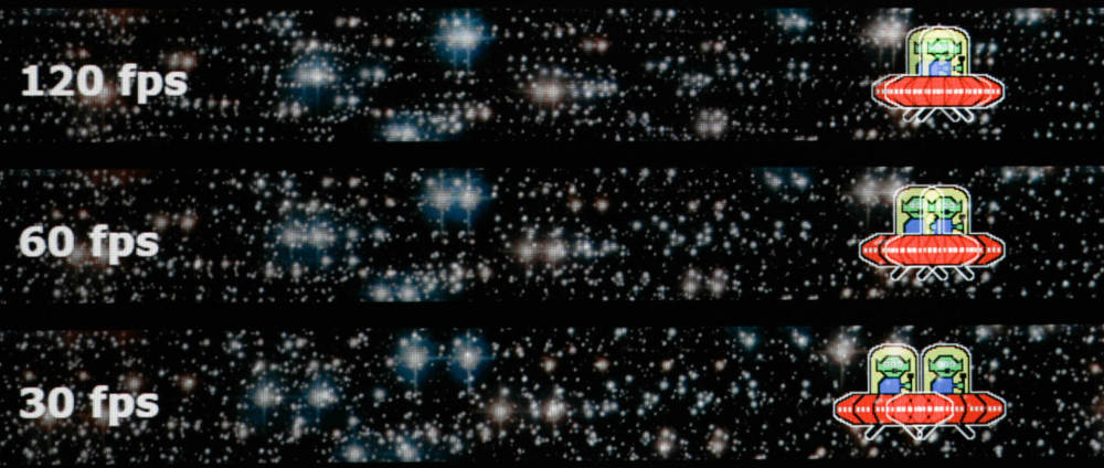 除了画质优势之外,我认为,120赫兹的快速增资速度也是显而易见的一点。一些人声称,他们在玩电子游戏时不需要洗牙。事实上,这是一个相当有限的观点。快速更新缩小了框架与框架之间的差距。下图显示微小的飞行磁盘以同样的速度移动。具有120个框架的飞行磁盘的可接收性最差。这给了他们一种一致性感。因此,只要出现快速的假想,高刷子的影响是显而易见的。除了游戏之外,我们定期利用我们的网站幻灯片。在移动到 Windows 后, 动画可以检测到一个更一致的 120Hz 屏幕 。