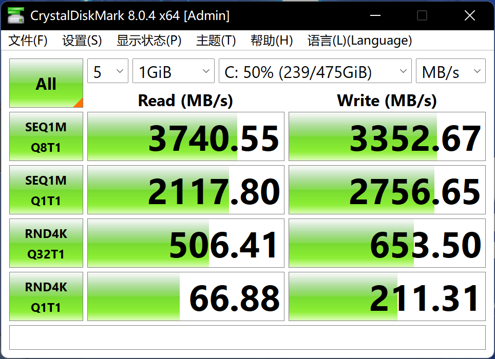 读取用239千兆瓦写成的肮脏磁盘,仍可运行至3740兆瓦/秒,并写3 352兆瓦/秒,因为这个固体闪光是原植物TLC颗粒,预期寿命为300 TBW。