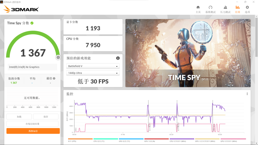 视觉仍然用 3D 标记来评估, TimeSpy卡在插件模式下除以 1,193 点, 大致等于 MX250, 约为 MX 450 的半数, 完全用作浓度 。