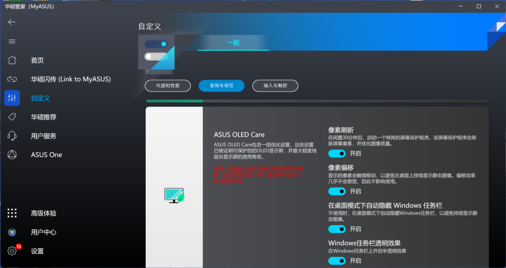 对OLED燃烧屏问题的一系列对策也建在MyASUS之上,而MyASUS是一个大型的预组前方案。