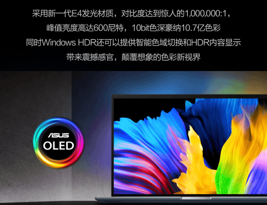 笔记本的 OLED 屏幕使用E4 材料优化,延长 OLED 屏幕的寿命及其亮度、颜色等等,是最好的。