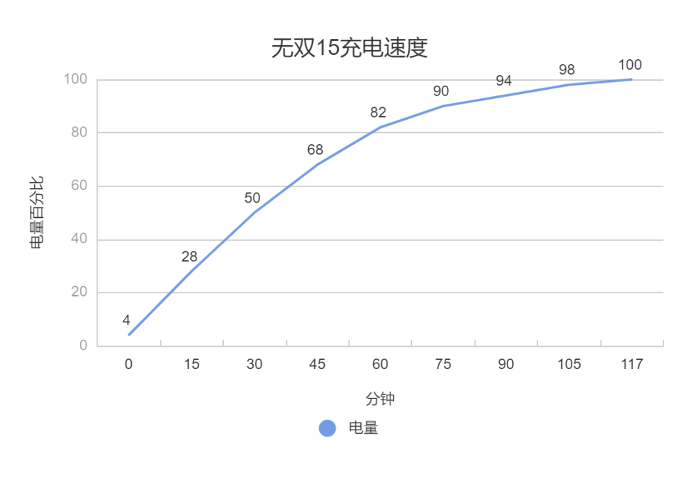 依填充器输入功率而定,输入功率在最初15分钟内可以维持在或超过81W,输入功率在30分钟前可以稳定在或超过75W,充电电量从35分钟开始下降至滴滴充模式。