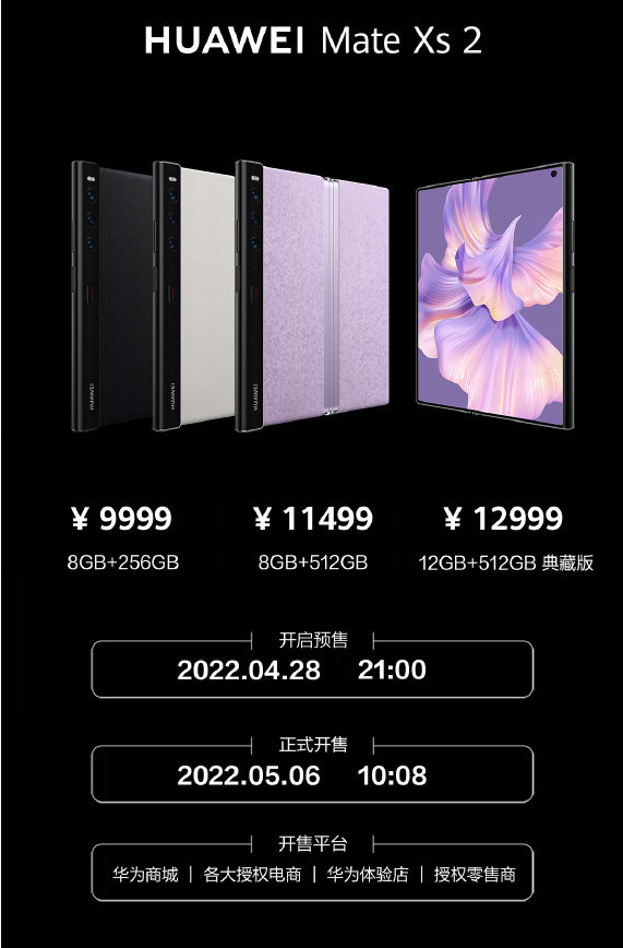 华为 Mate Xs 2 折叠旗舰9999元 与众多新品共同发布