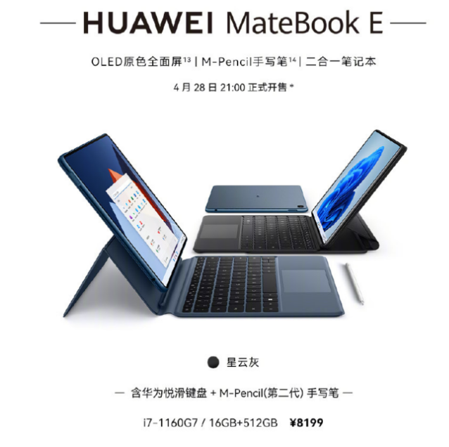 向 MateBook E Slidr + M-Pencil (第二代) 提供 Wax 套装到 MateBook E Slidr + M-Pencil (第二代),购买价为8199美元。现已开售。4月27日起,双对一笔笔记本电脑意味着零售成本下降500美元。我们可能在中国城、中国城、中国官方国旗商店和中国购买。增加计费活动评估。MateBook E-Walf是滑板的包装版,4月28日2100点在VMAL出售。有兴趣的话看一看!