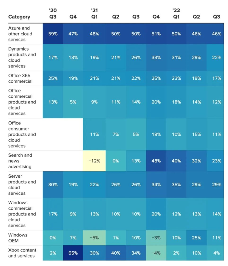 从分项业务来看,“智慧云”市场的收入增长显著。这是市场信心增加的主要原因。本季度,Azure、GitHub、服务器货物和云服务等“智能云”活动的收入为1.905亿美元。这比市场预测高出189亿多美元。同比增长26%。其中,Axure和其他云服务逐年增加46%。增长率与前一个季度相比没有变化。