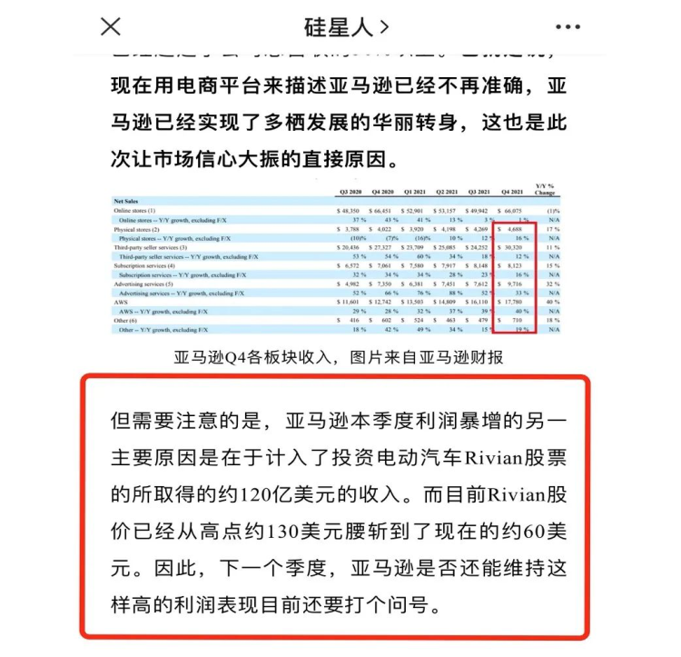 在这方面,西南锥体已经在上个季度亚马逊金融分析中提供了预警,尽管亚马逊在前一个季度提供了高达143亿美元的巨额利润,但其中120亿美元是通过在里维昂的投资获得的。