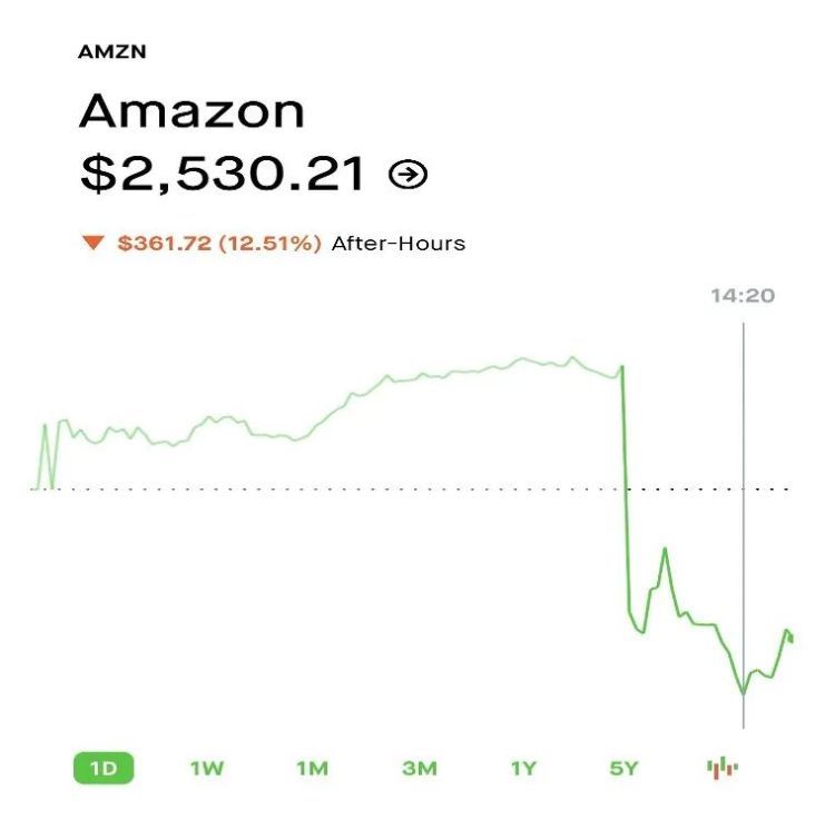 这一次,梅塔和亚马逊交易剧本, 这两家企业的最后一个季度事件在本季度发生倒退, 亚马逊股票价格在今天新闻后立刻暴涨, 造成一天后历史上最大的损失。