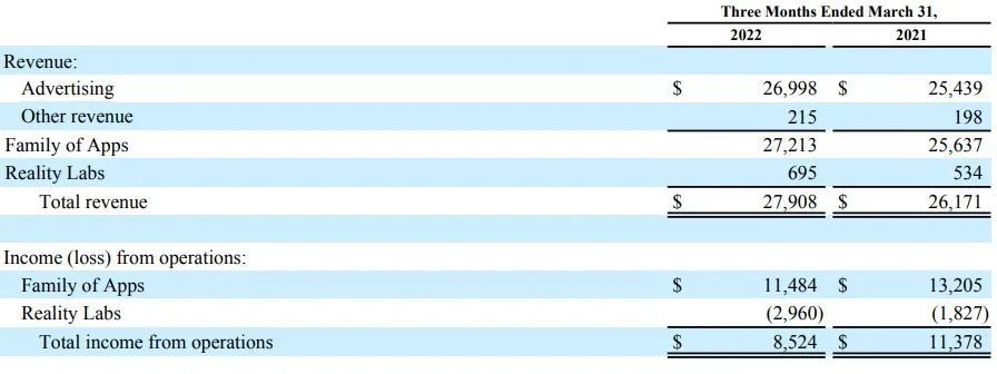 它与VR的生意无关, 但这是因为它是一个企业,一个企业, 一个企业,一个企业,一个企业,一个企业, 一个企业,一个企业,一个企业,一个企业,一个企业,一个企业,一个企业,一个企业,一个企业,一个企业,一个企业,一个企业,一个企业,一个企业,一个企业,一个企业,一个企业,一个企业,一个企业,一个企业,一个企业,一个企业,一个企业,一个企业,一个企业,一个企业,一个企业,一个企业,一个企业,一个企业,一个企业,一个企业,一个企业,一个企业,一个企业,一个企业,一个企业,一个企业,一个企业,一个企业,一个企业,一个企业,一个企业,一个企业,一个企业,一个企业,一个企业,一个企业,一个企业,一个企业,一个企业,一个企业,一个企业,一个企业,Apps(FoA)家族继续产生大部分收入。Facebook、Instagram和WhatsApp等网站的广告收入,然而,本季度的销售增长率是该公司十年来最低的。Meta承认俄罗斯联邦的情况对其业务发展的影响。