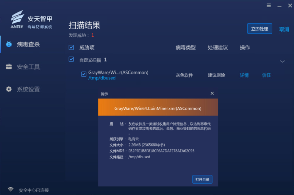 事实证明,Windows和Linux版本的反米格米和僵尸网络防御系统(IEP)可提供良好的保护,防止挖掘的木马和僵尸网络行动被杀死。
