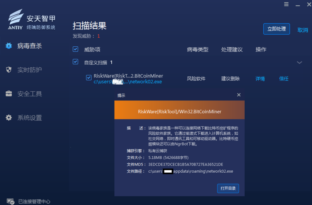 事实证明, " Windows " 和 " Linux " 版本的反医疗终端防御系统(IEP)有效地杀死了发现的木马,并有效地保护了用户终端。