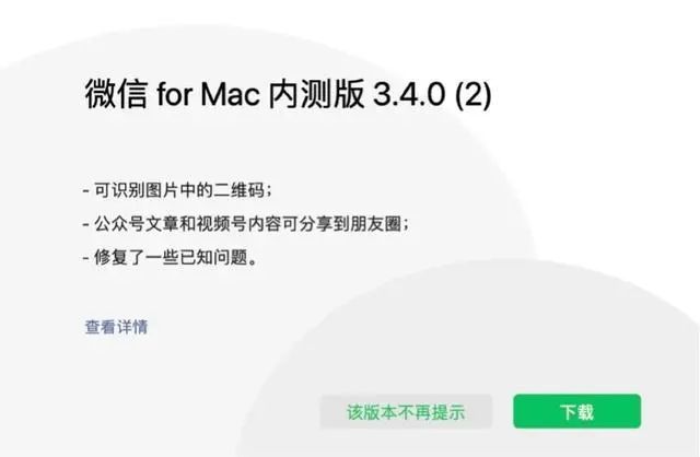 Mac 微信 3.4.0更新,新增分享文章和视频号到朋友圈