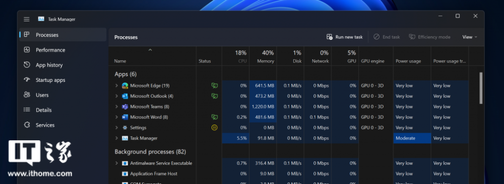 微软Win11 Dev/Beta预览版22610发布:多彩任务管理器