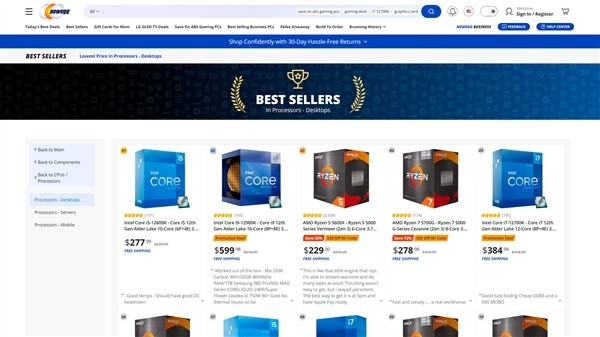 根据新的鸡蛋页,AMD和英特尔在最新的最畅销的CPU TOOP10秋季平均分配,但前两代是12代酷酷的智慧,即277.9美元是5至12 600K,599.9美元是9至12 900K。