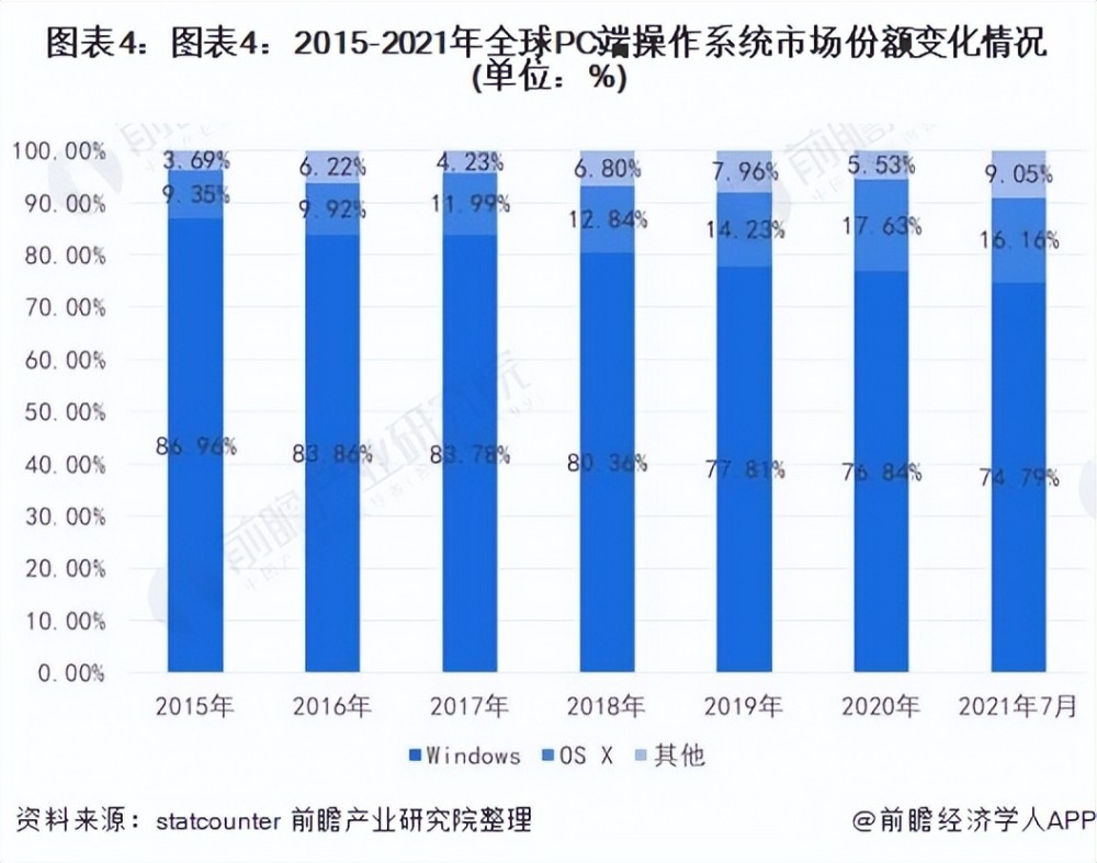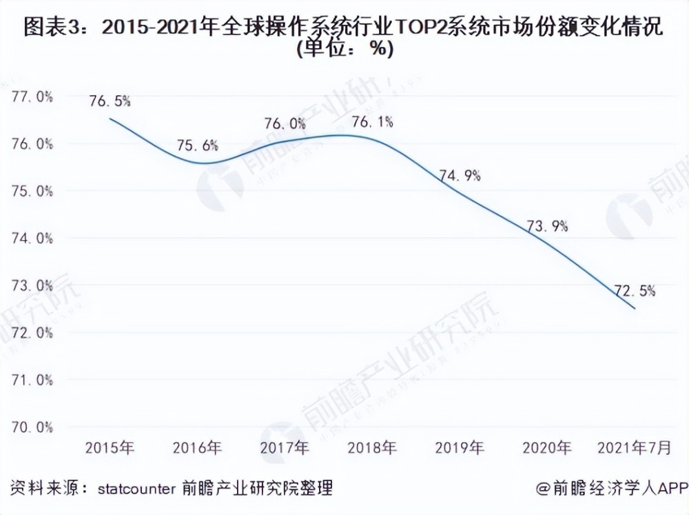 2022年全球操作系统行业竞争格局及市场份额分析 寡头竞争明显但TOP2市占率呈下