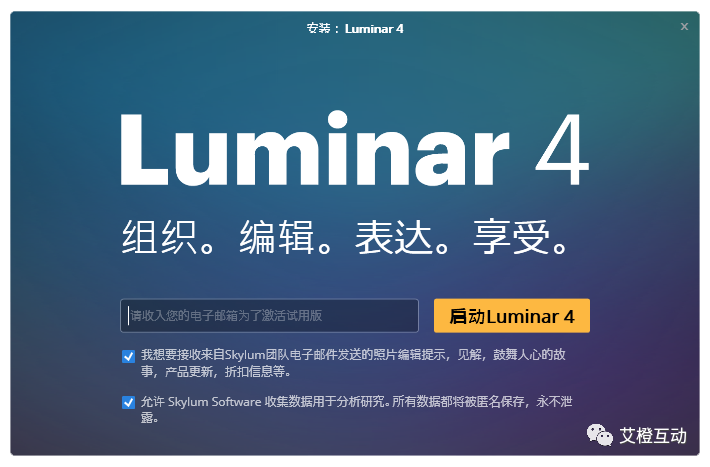 完成安装,启动Luminar 4,并输入信箱。