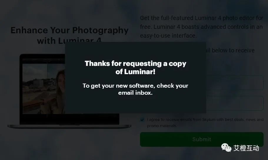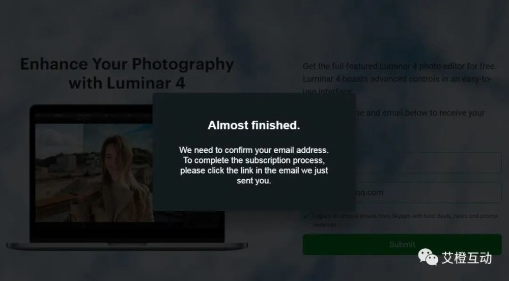 在例二中,如果你从未登录到Luminar并将邮箱输入活动页面,邮箱就不再使用,如下图所示。
