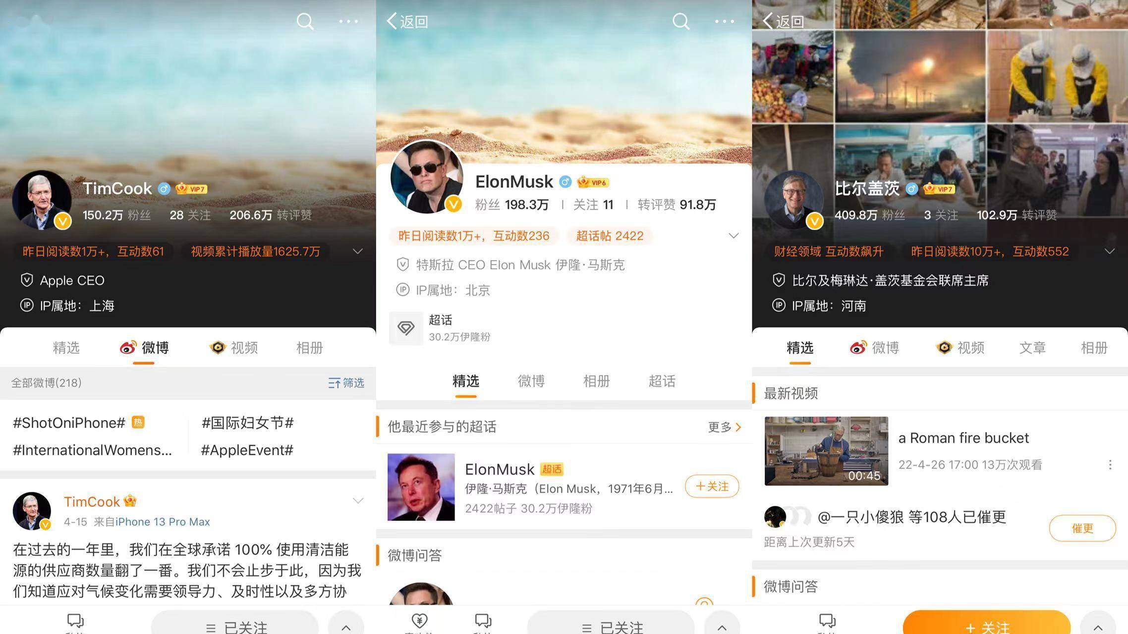 国外名人的微博IP属地:比尔盖茨在河南,马斯克在北京,库克在上海