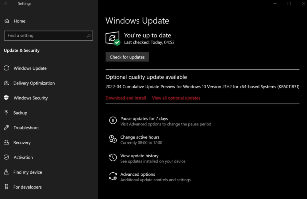 Windows 10 KB5011831已被释放,操作系统中可能存在的死亡黑屏问题已经解决。