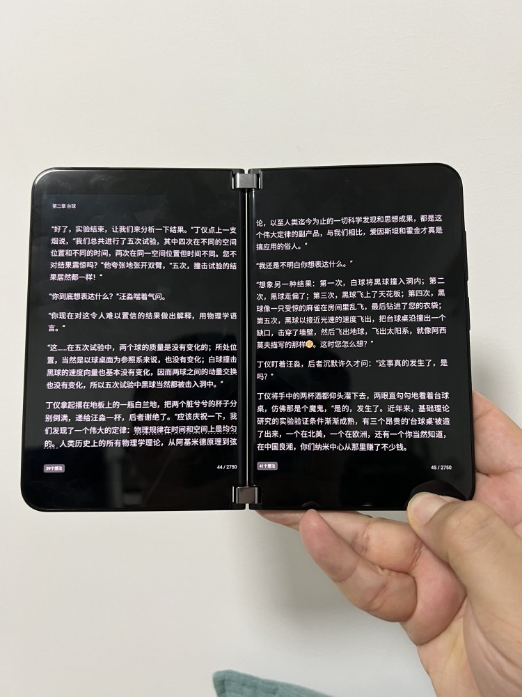 因为使用了两个平行的显示器,因此,在我下令之前,在水面Duo2上使用漫画书和图书阅读软件是最受欢迎的。毕竟,它确实有一种真实的书的感觉。在实际使用过程中,在使用良好的微额学习应用软件之后,全屏模式可以提供非常舒适的阅读经验。和看书差不多