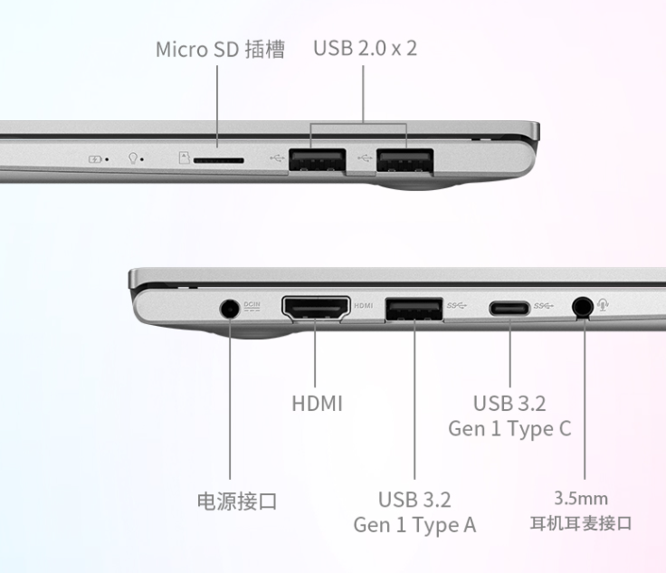 WiFi 6、Blue牙5.1、USB、读卡器和C型接口:45.6小时电池、1.5公斤重量和预先装好的Windows 10系统。