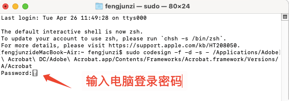 sudo codesign -f -d -s - /Applications/Adobe Acrobat DC/Adobe Acrobat.app/Contents/Frameworks/Acrobat.framework/Versions/A/Acrobat