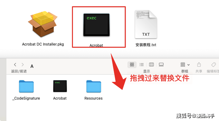 2. 随着初级方案的安装,将Acrobat裂缝补丁复制并粘贴到以下路径替换文件:/Adobe Acrobat DC/Adobe Acrobat.