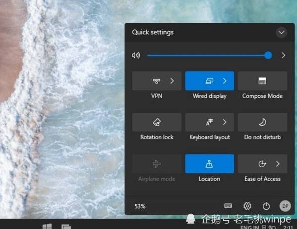 考虑一下操作中心的设计。在Win10X中,在新的操作系统之上,我们可以看到Win10X的响亮和亮度。蓝牙、无线网络和电源配置的选择 在中心。此外,在右边,我们可以选择其中一种可能性。更个性化