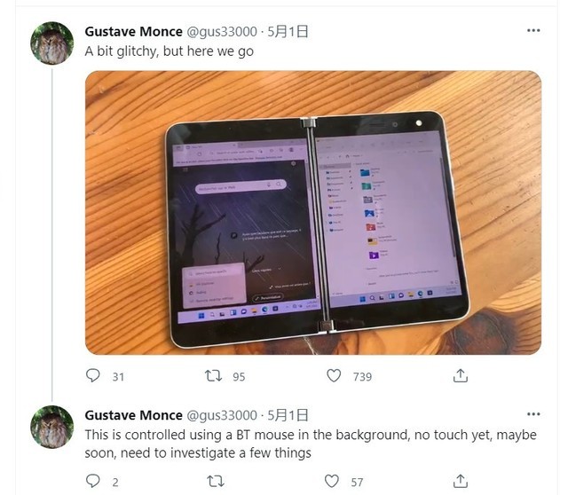 然而,值得一提的是,已经纳入Win11的Duo表面无法进行触摸控制,只能由Gustave Monce通过鼠标加以控制。