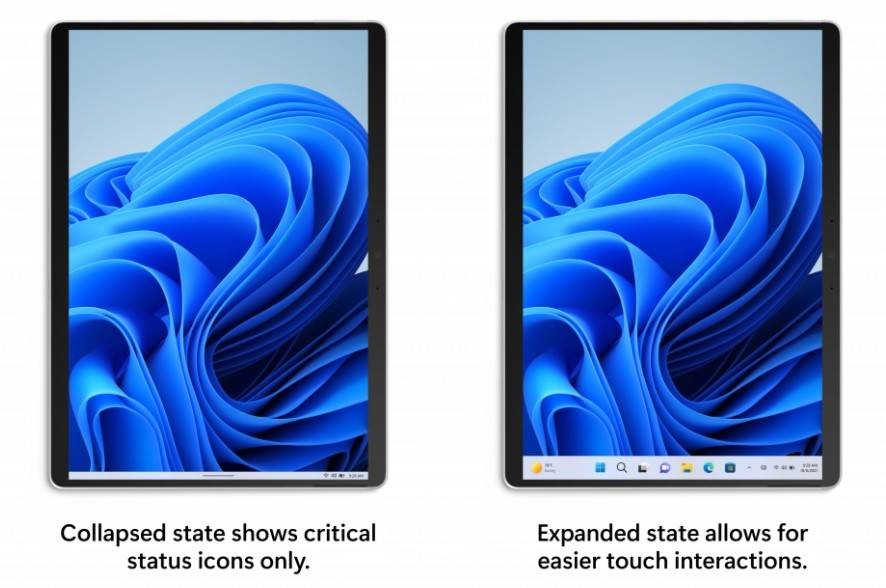 例如, 微软 hafe 开发了一个新的最小任务栏界面, 当用户不使用它时使用空间较少。 这对使用小屏幕的平板电脑特别有利, 因为它允许程序在设备上操作更多空间 。