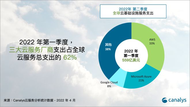IT House的5月4日新闻。根据最近Canarys的数据:2022年前三个月全球云层基础设施支出逐年上升34%。它已经超过559亿美元。这比前一个季度增加了20亿美元。这比2021年第一季度增加了140亿美元。