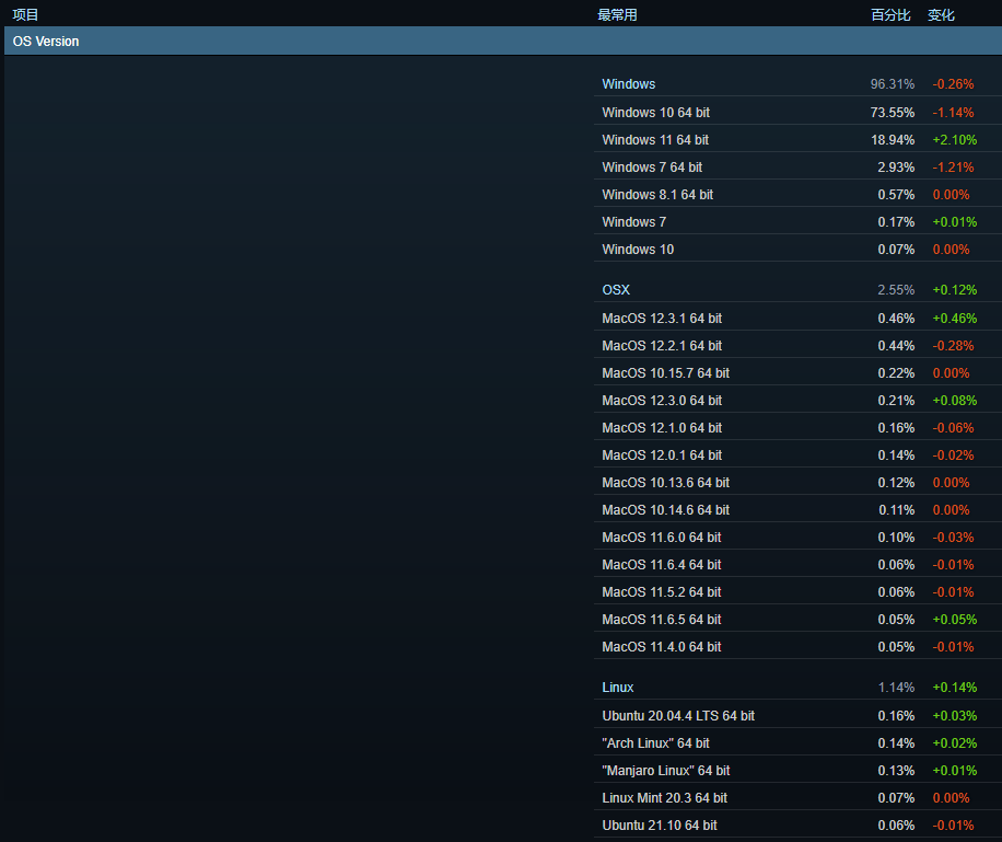 IT House发现苹果 MacOS和Linux在蒸汽用户中仍然短缺,MAcOS操作系统仅占2.55%(+0.14%)。
