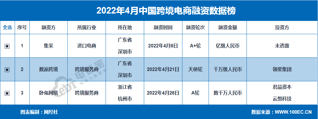 根据DATA,互联网公司大型的电力生产商数据库100EC.CN)监测数据,2022年4月,跨界电力供应商领域的三个平台和服务供应商为收集、分配、跨界睡眠网络获得资金,总金额超过13亿元。