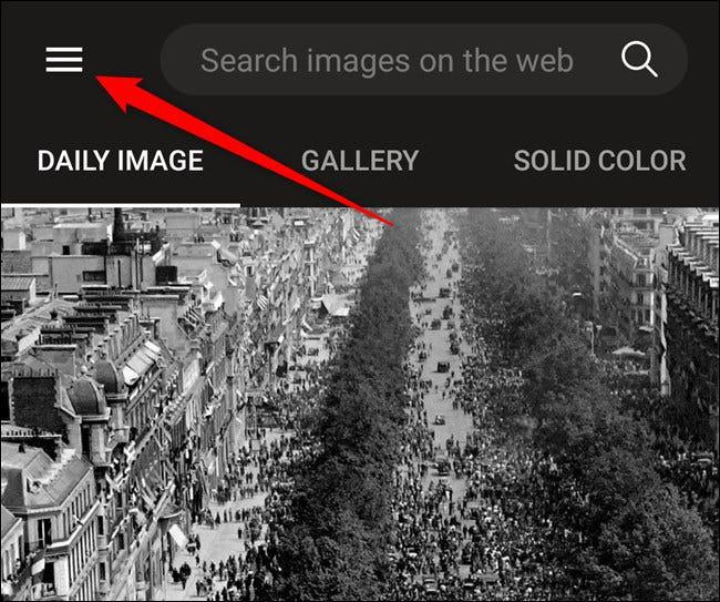 当您准备好启用 Bing 在您的 Android 手机上的 auupperaper 功能时, 请单击主屏幕左上角的汉堡菜单符号 。