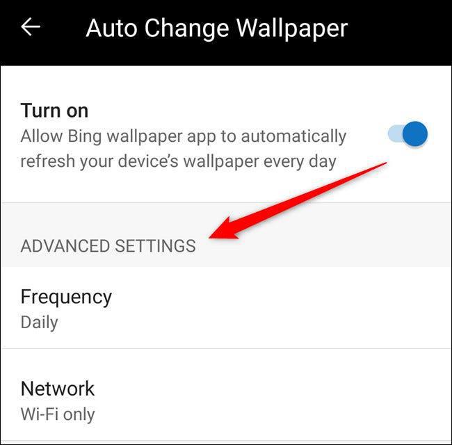 设置壁纸后,您将被发回自动更改桌布菜单 。在这里,此函数的高级设置可以修改。它包含背景变化的频率。您是否想要只在您的 Android智能手机连接到无线网络时下载新照片?或者在使用细胞数据时是否应该拍下快照。