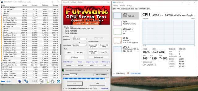 ▼室温26度,在半个小时的时间里,CPU和GPU是双烹制的。最高温度78度