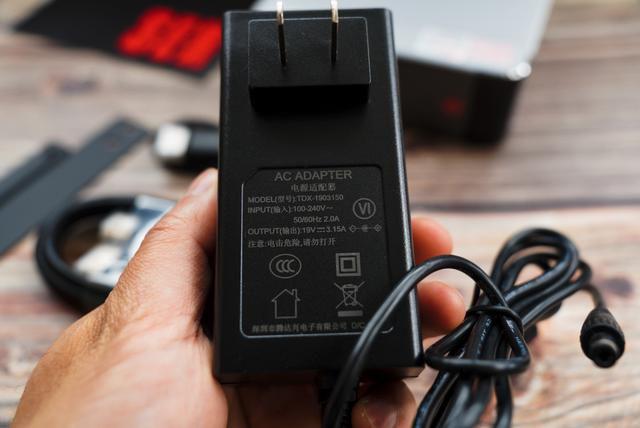 包装是相当直截了当的。除了宿主和指示之外,两条HDMI电缆,一条长(1米),一条短(0)。长程HDMI线适合各种桌面安排(主机体体积不大)。短线可以将它放在显示器下方。这不是唯一会发生在我们身上的事, 但它不是同样的事情会发生在我们身上。在电源适配器组件中使用了 DC 接口 。产出:19V3.15A 60W稍微小一点