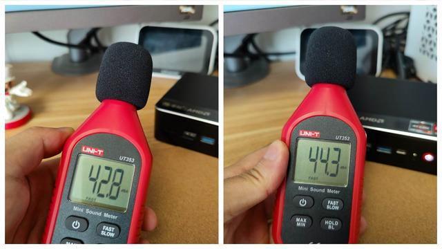 左到左的噪音为42.8分贝,右到右的噪音为44.3分贝。